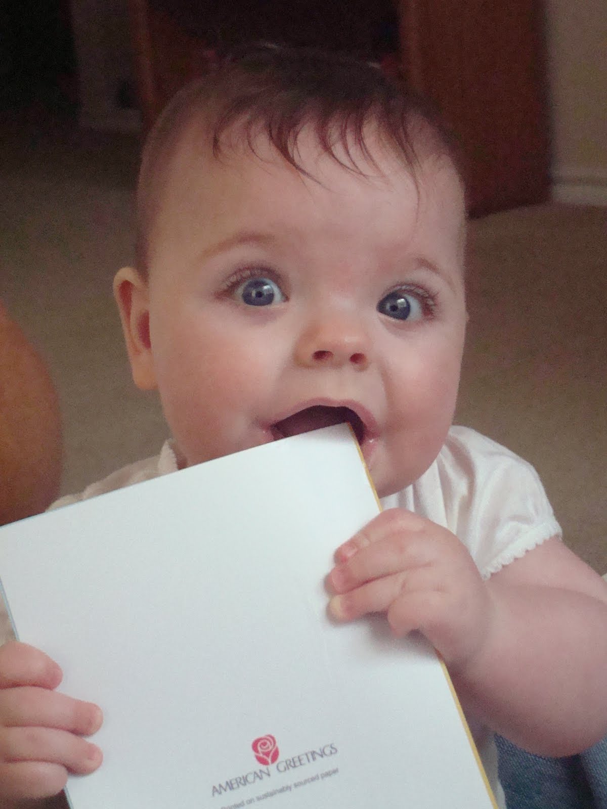 Sadie had a doctor's visit on Tuesday, she is 23.5 lbs and 31.5 inches long. She has dropped from the 90th percentile to the 75th. The doctor wasn't worried though and each time we go in he comments about how good Sadie's eyes look, so we continue to head in the right direction. She had a lot of doctor anxiety though so that made the visit more pleasant. She screamed the whole time, even before we got to the shots! Of course she stopped as soon as she got a sucker.